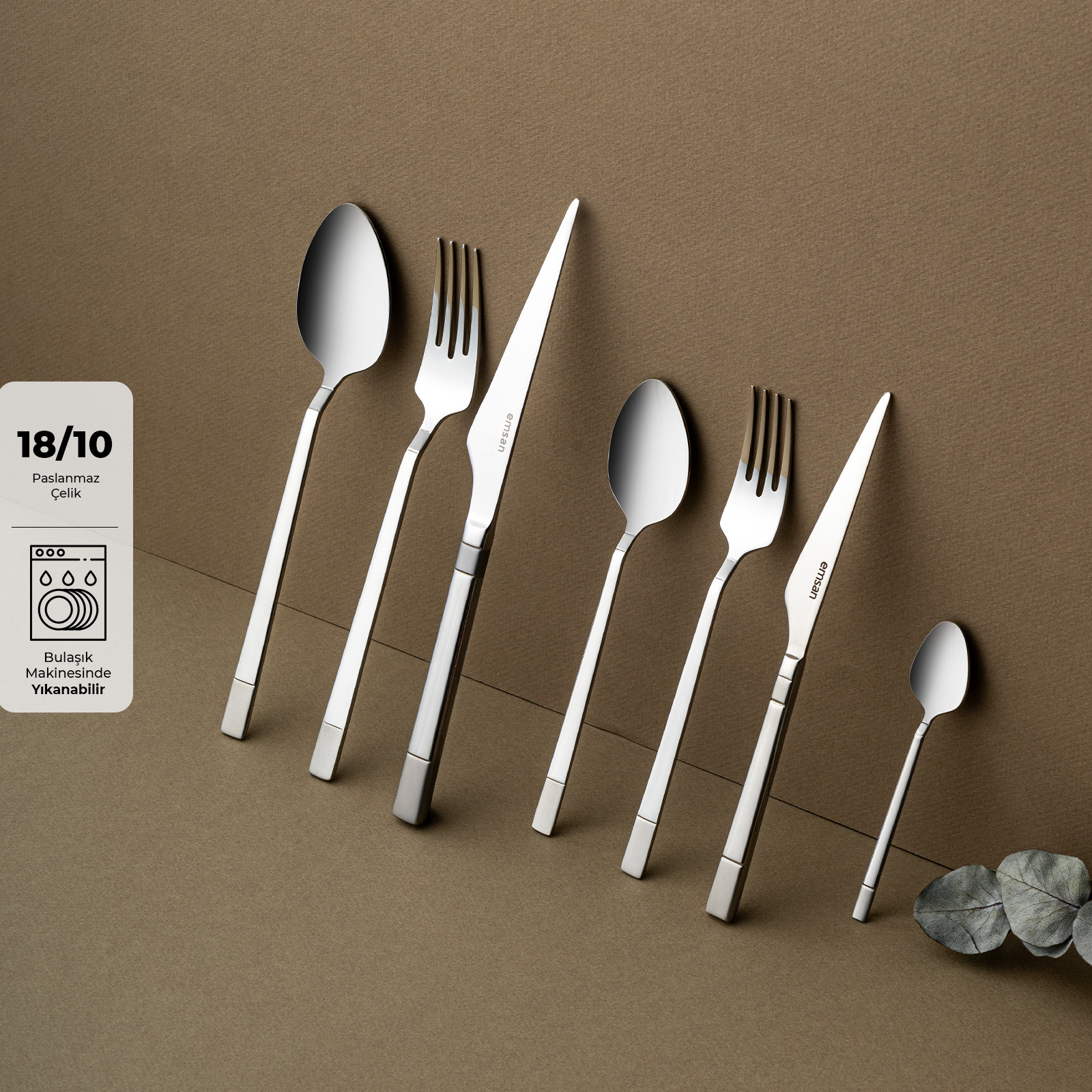 Çeliğin en şık formunu sofralarınıza Emsan kalitesinde taşıyan paslanmaz çatal, kaşık, bıçak seti.