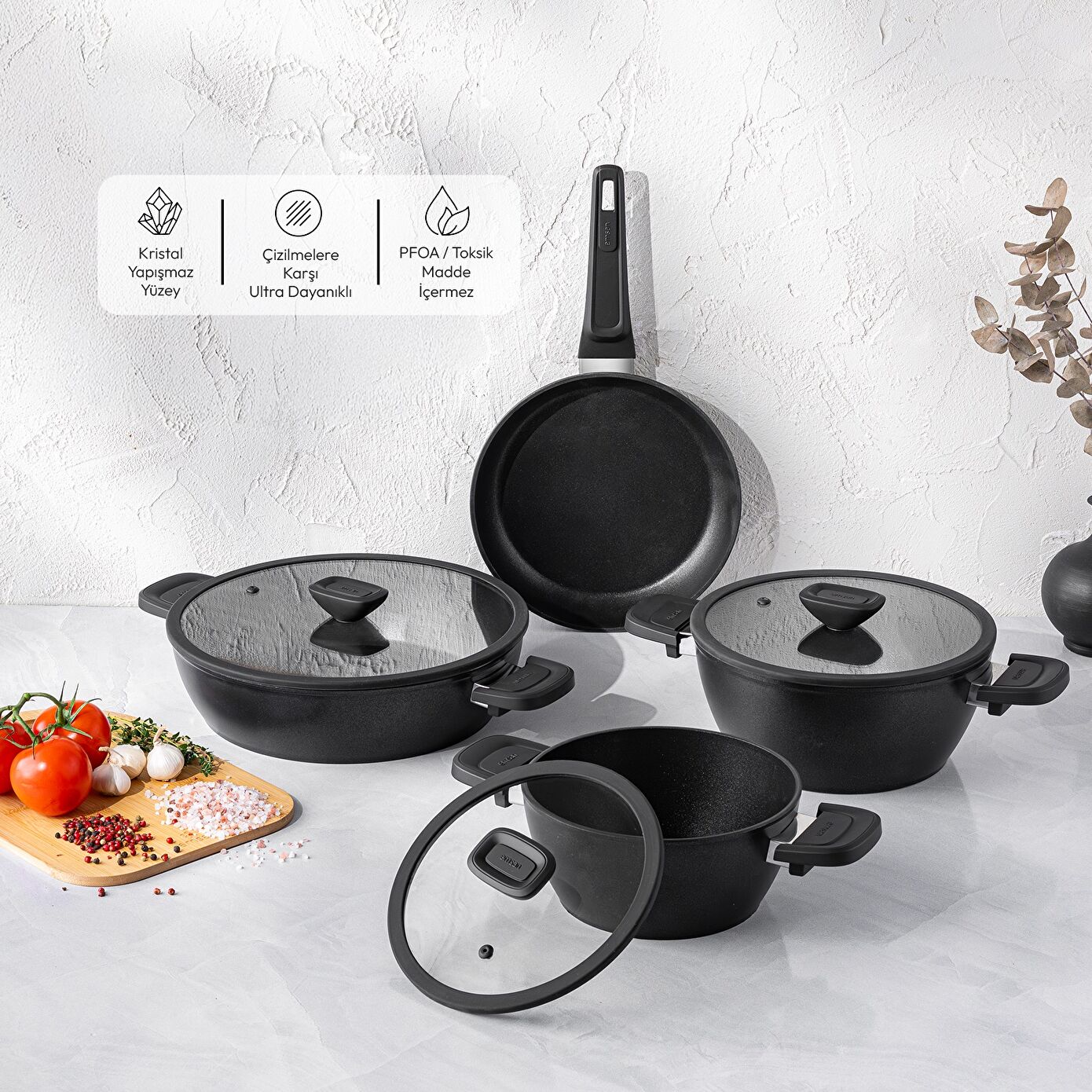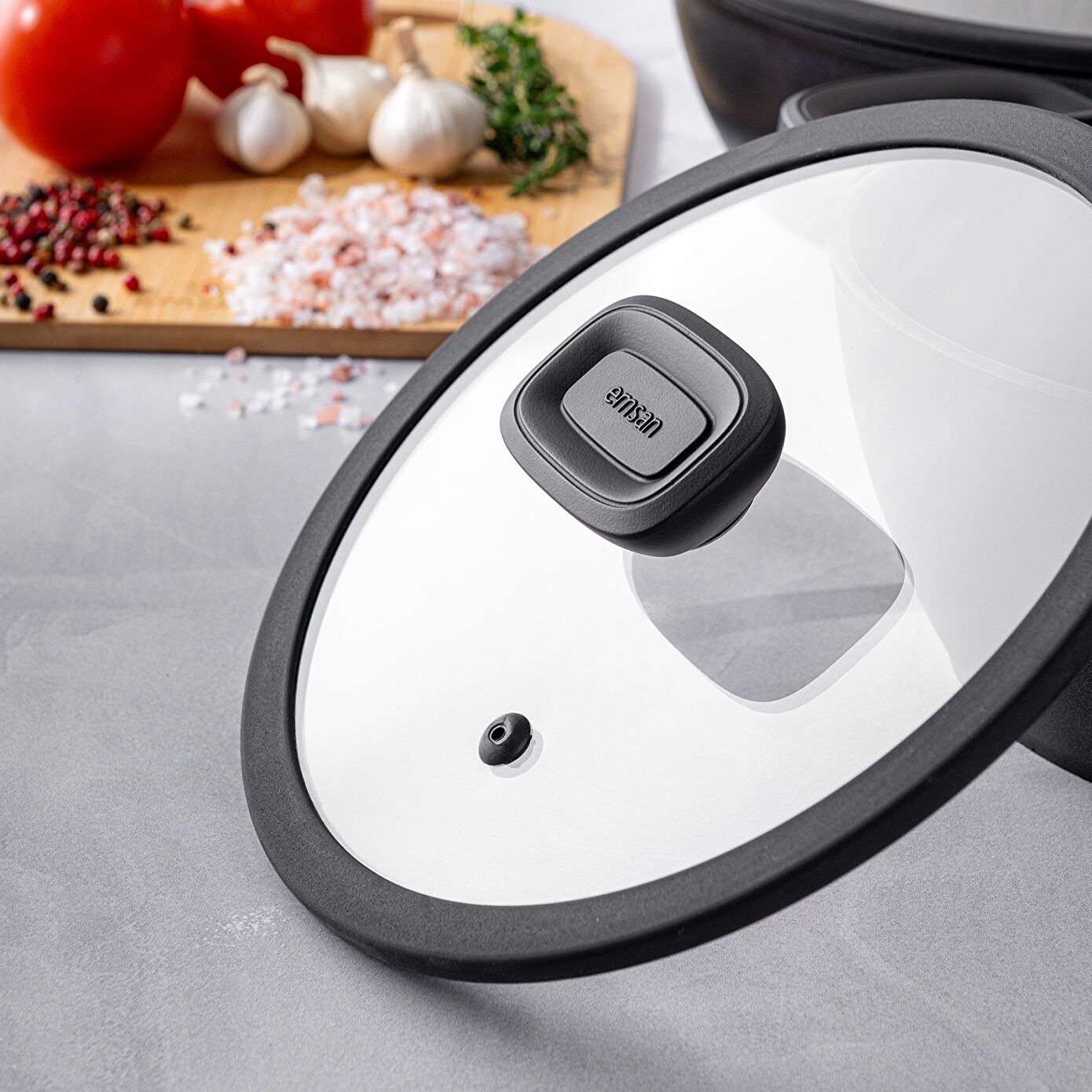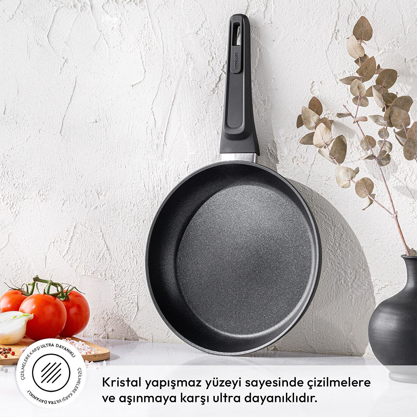Emsan Diamente, gücünü ve sağlamlığını doğanın en dayanıklı harikası gerçek elmas kristallerinden alır. Ultra dayanıklılık ve çizilmezlik özelliği sayesinde metal mutfak gereçleri ile de güvenle kullanılabilir. Üstün yanmaz yapışmaz yüzeyi ile et, balık, yumurta ve sebzeleri yağ kullanmadan sağlıklı bir şekilde pişirmeye olanak sunar. Isıyı her tarafa eşit olarak dağıtması sayesinde yemeklerin daha lezzetli pişmesini sağlar