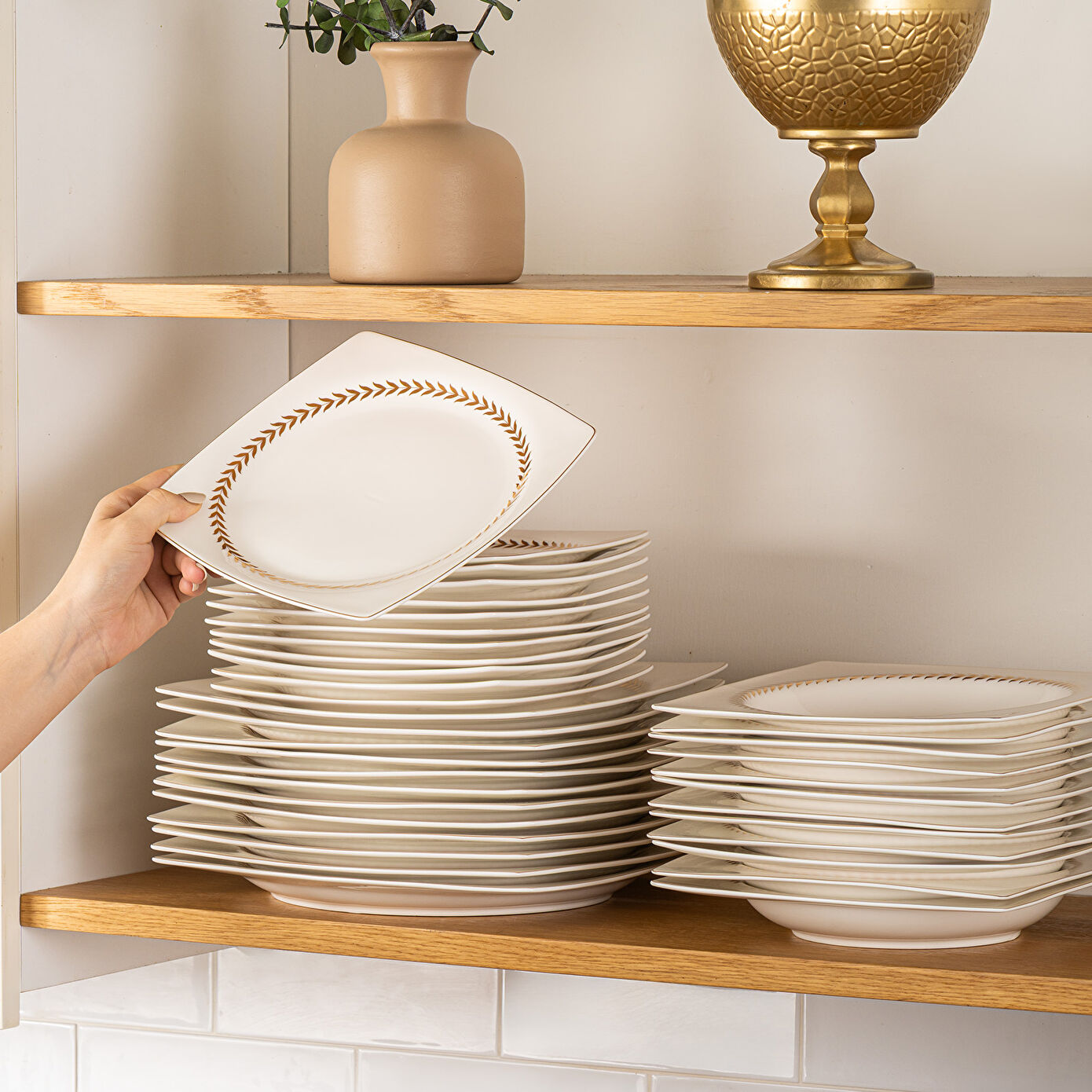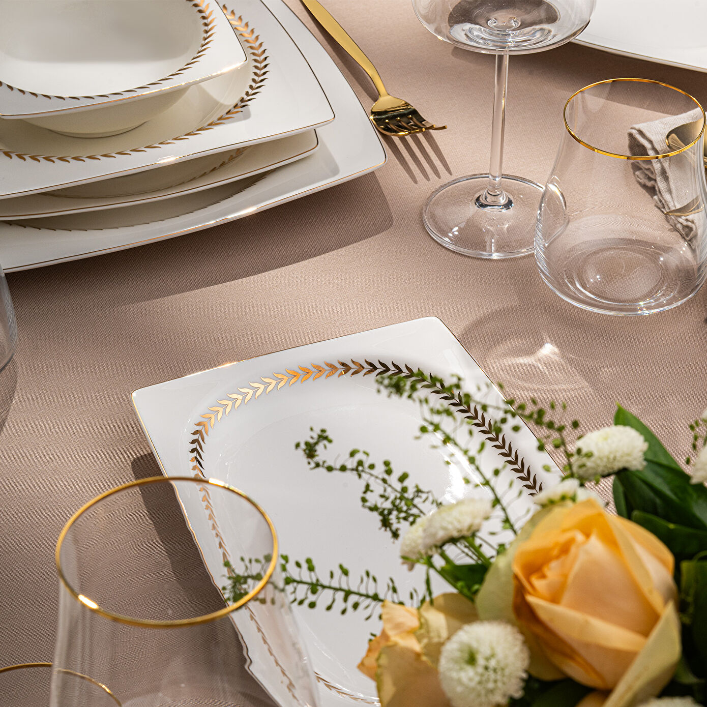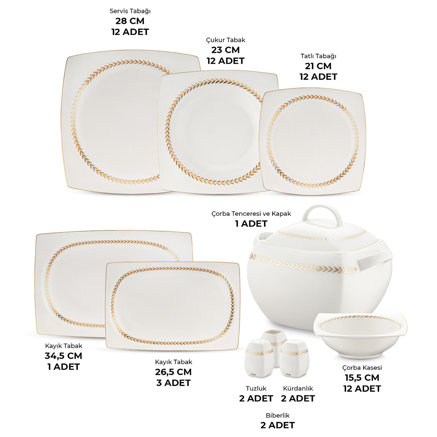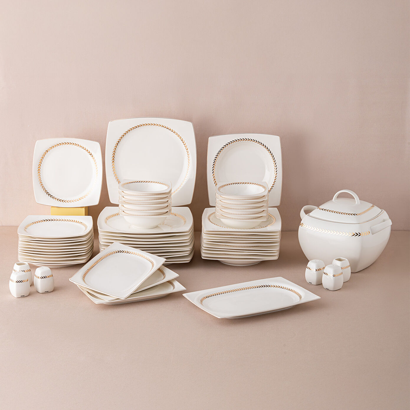 Emsan Başak Fine Bone 60 Parça 12 Kişilik Kare Yemek Takımı Gold