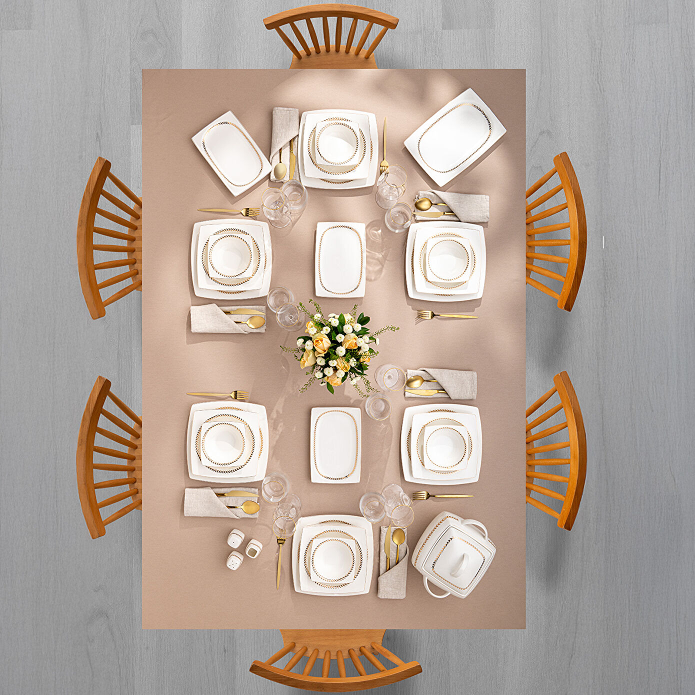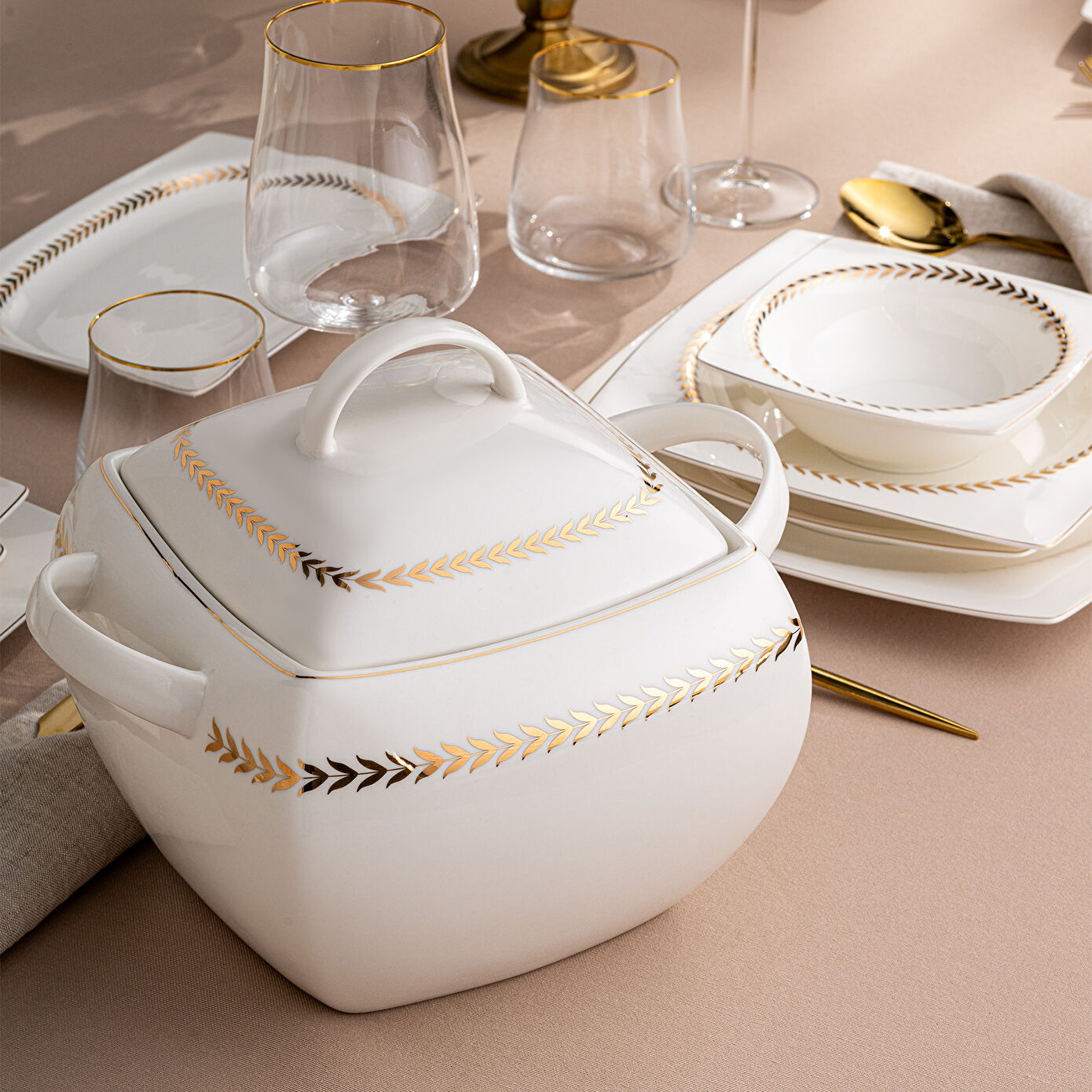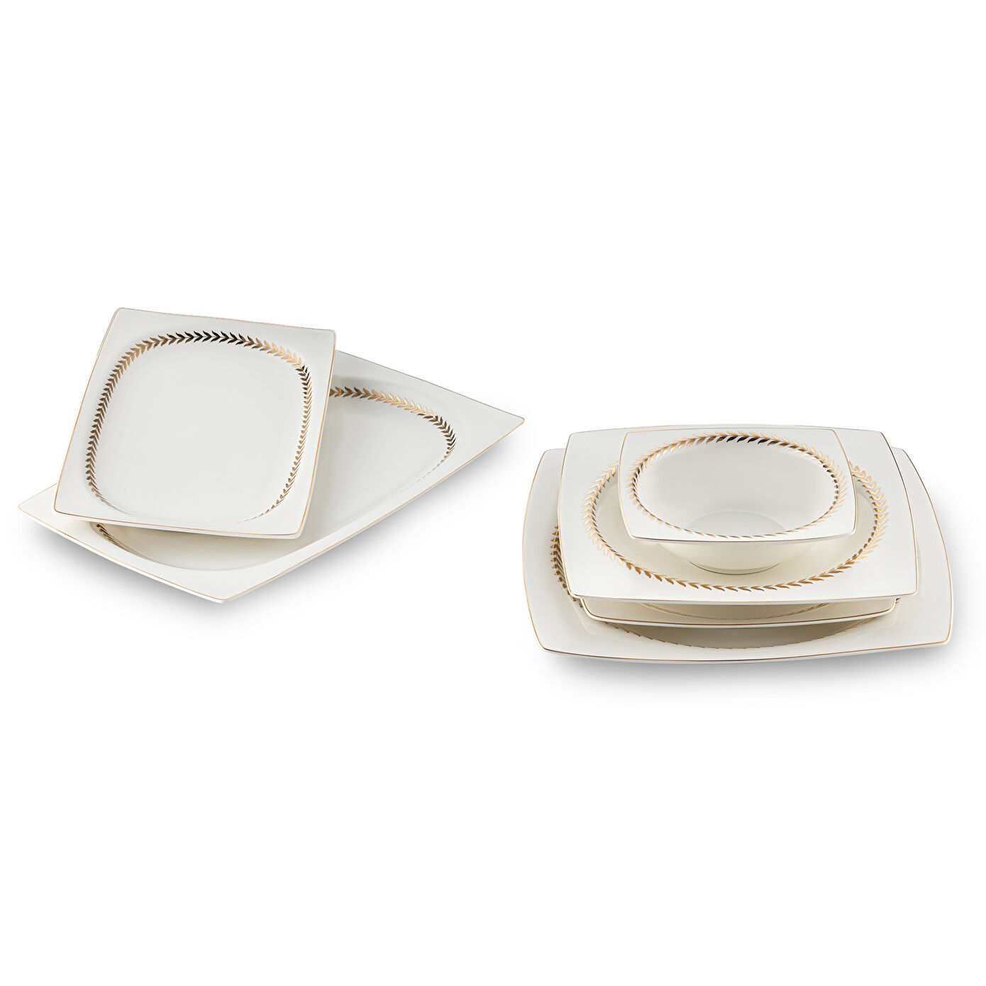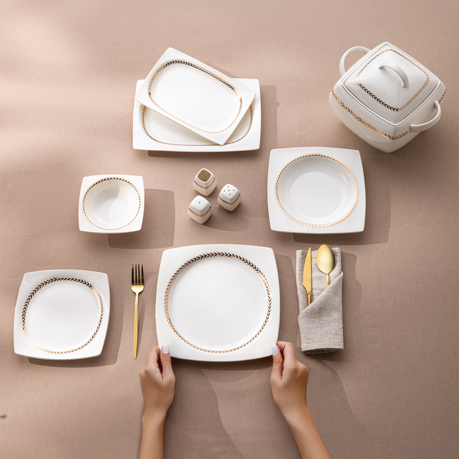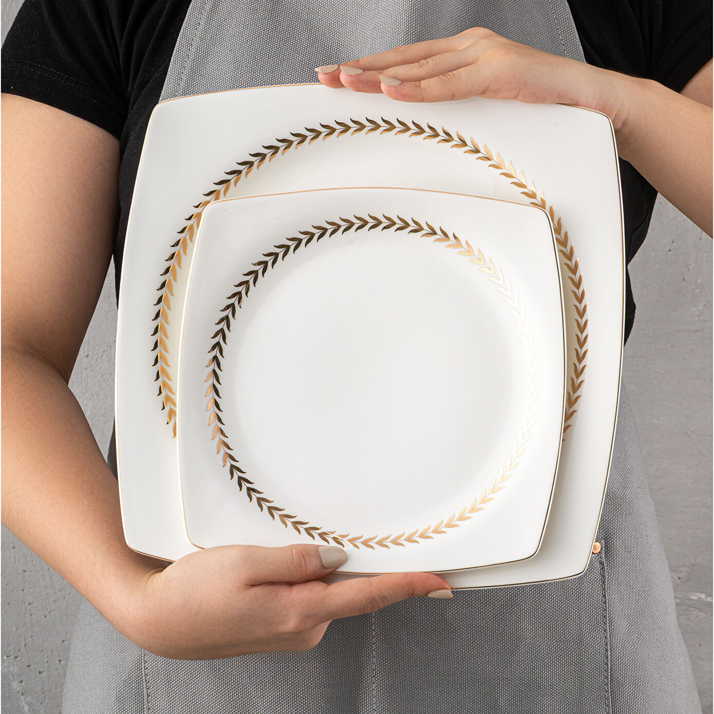 Emsan Başak Fine Bone 60 Parça 12 Kişilik Kare Yemek Takımı Gold