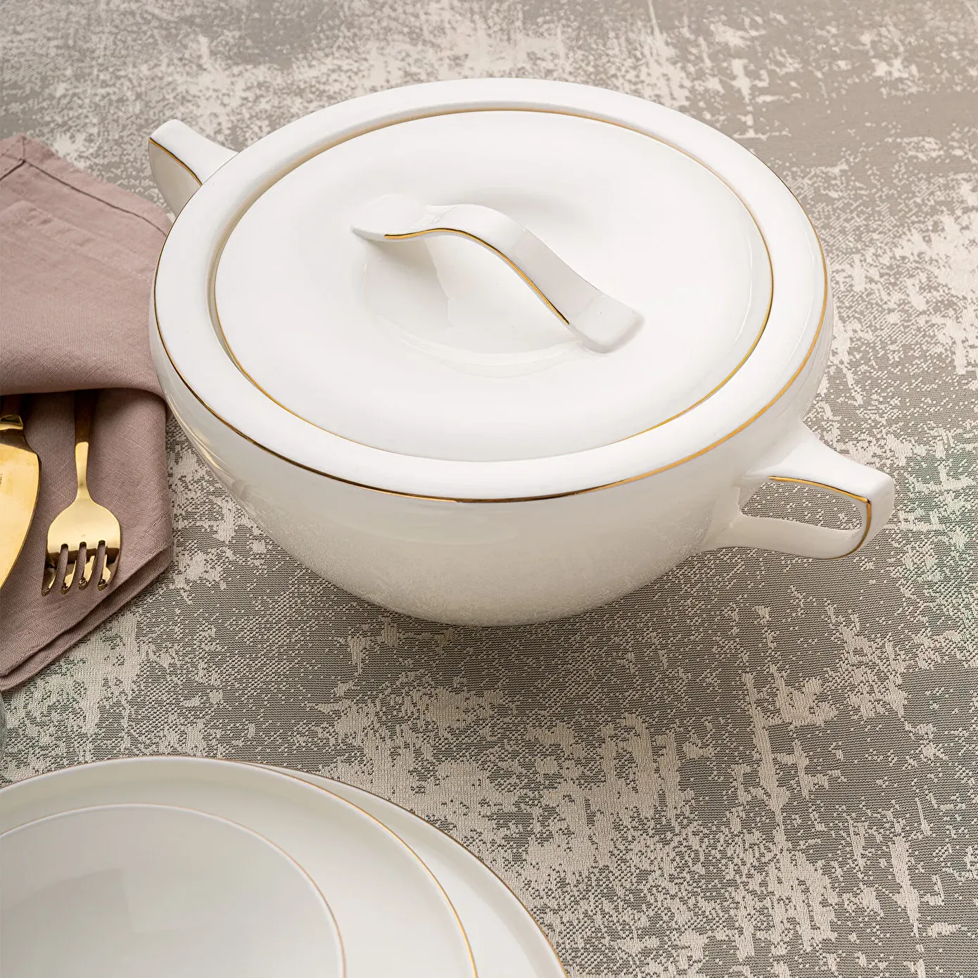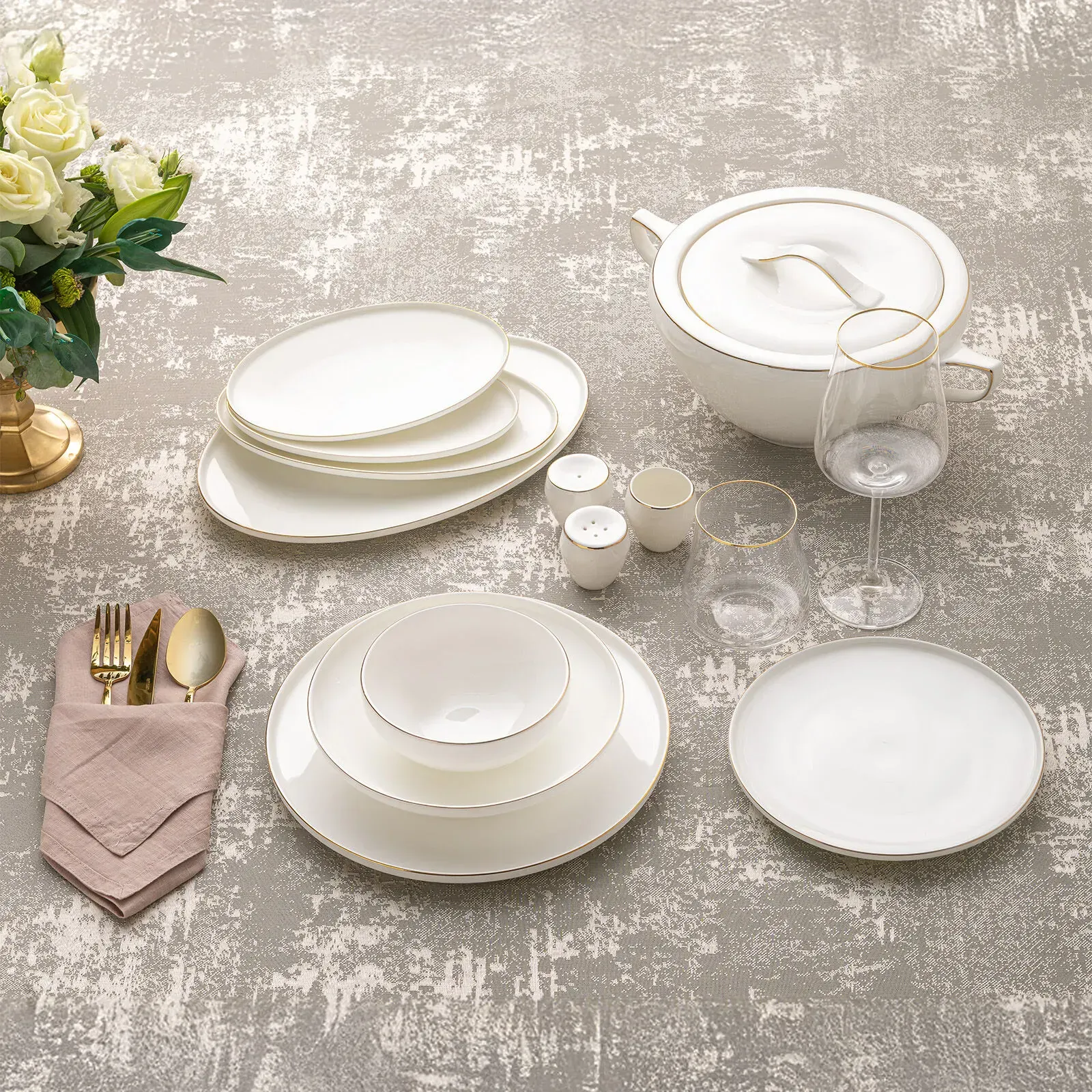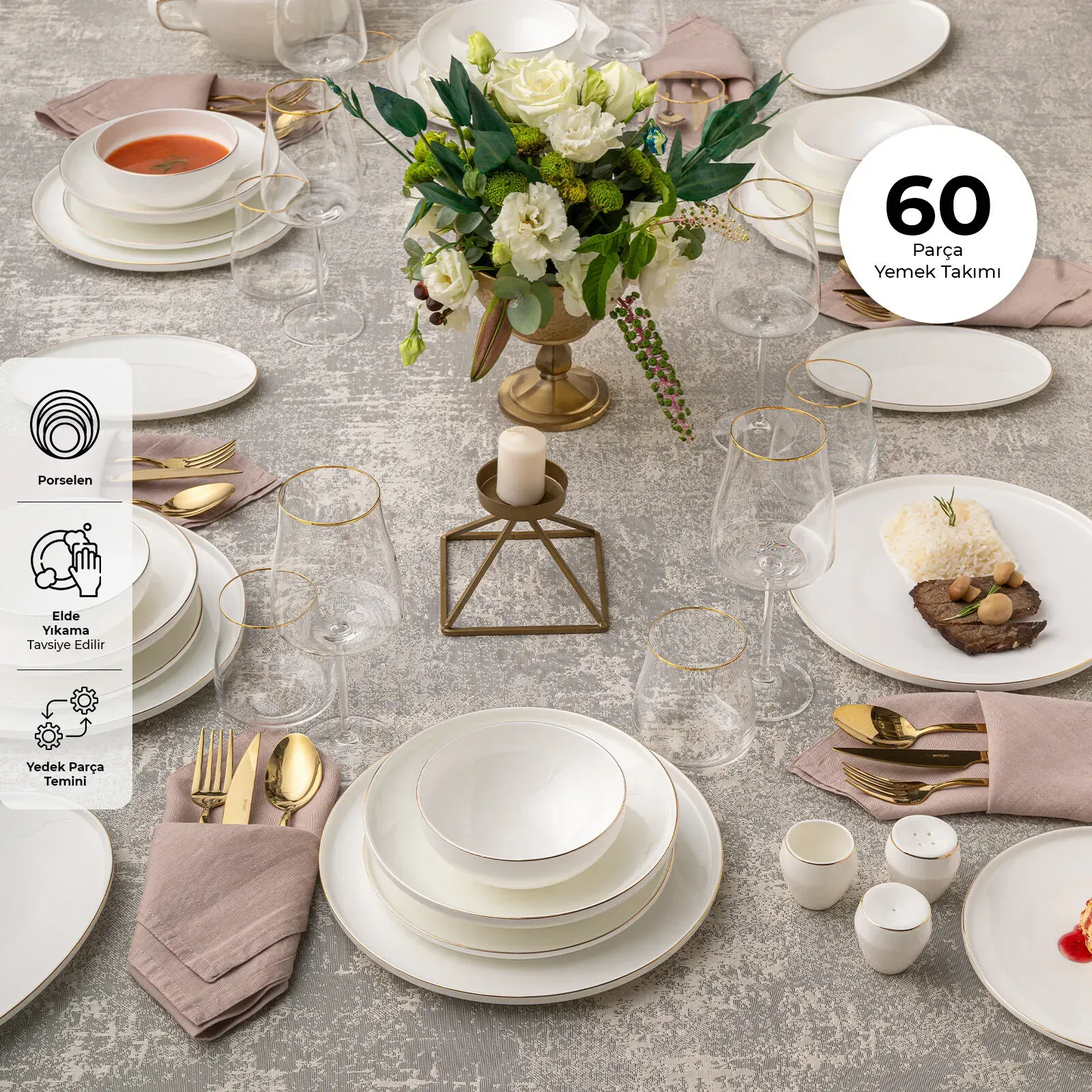Emsan Freya Fine Bone 60 Parça 12 Kişilik Yuvarlak Yemek Takımı Gold