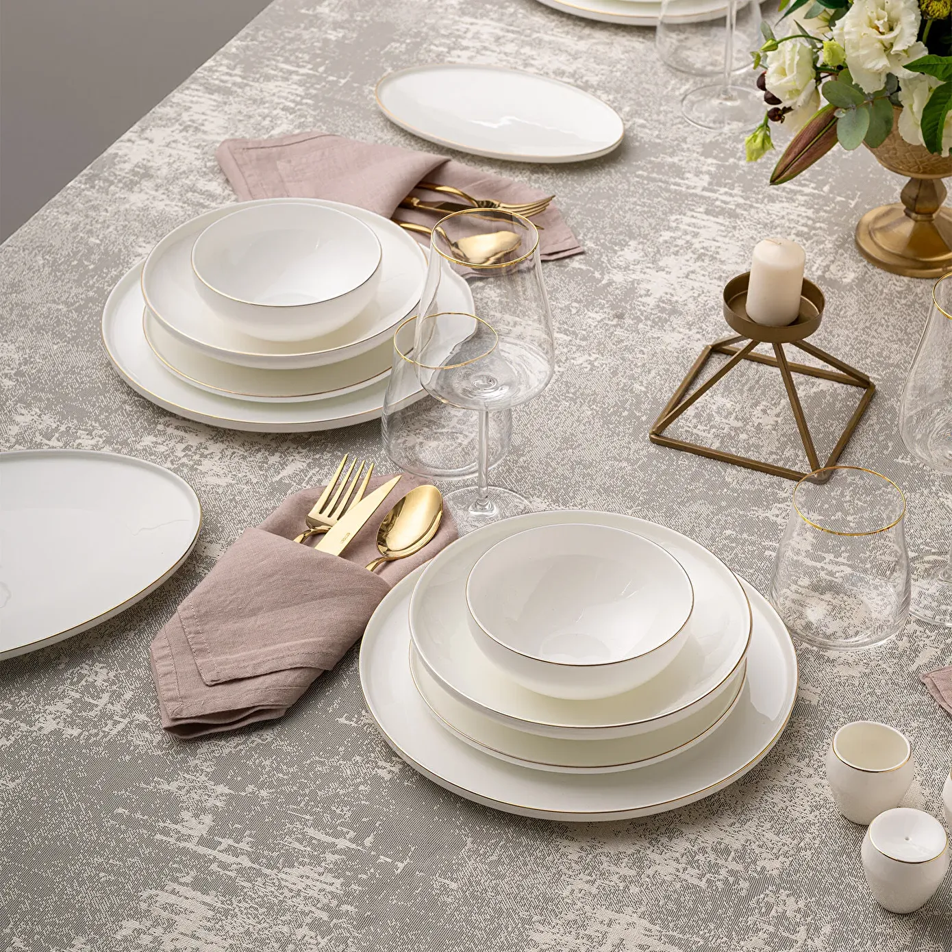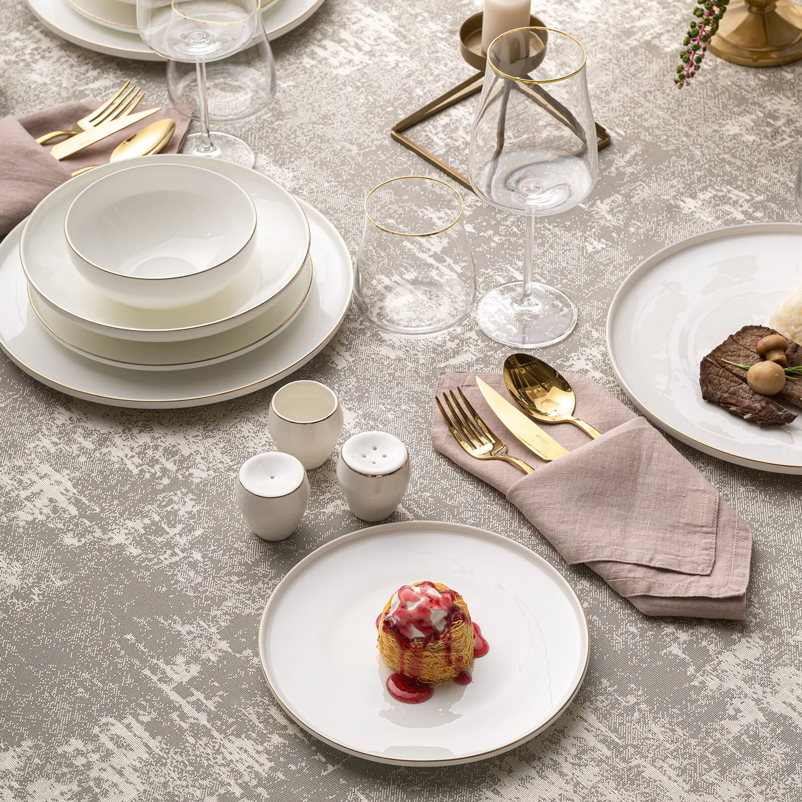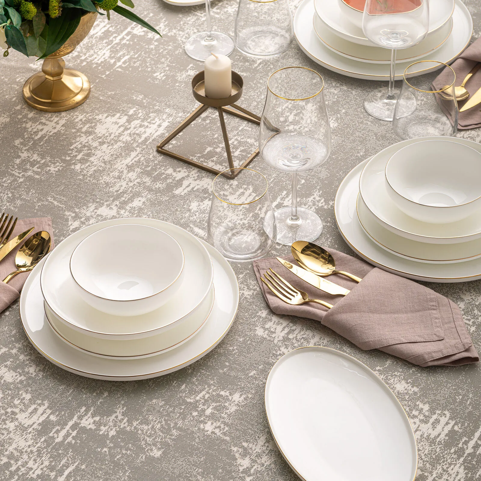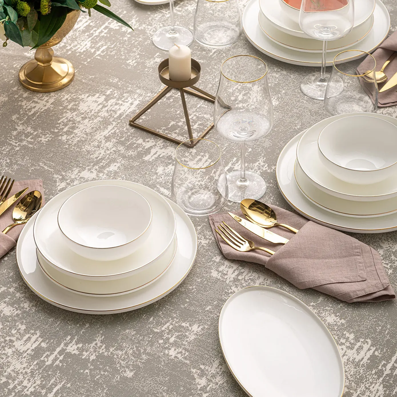 Emsan Freya Fine Bone 60 Parça 12 Kişilik Yuvarlak Yemek Takımı Gold