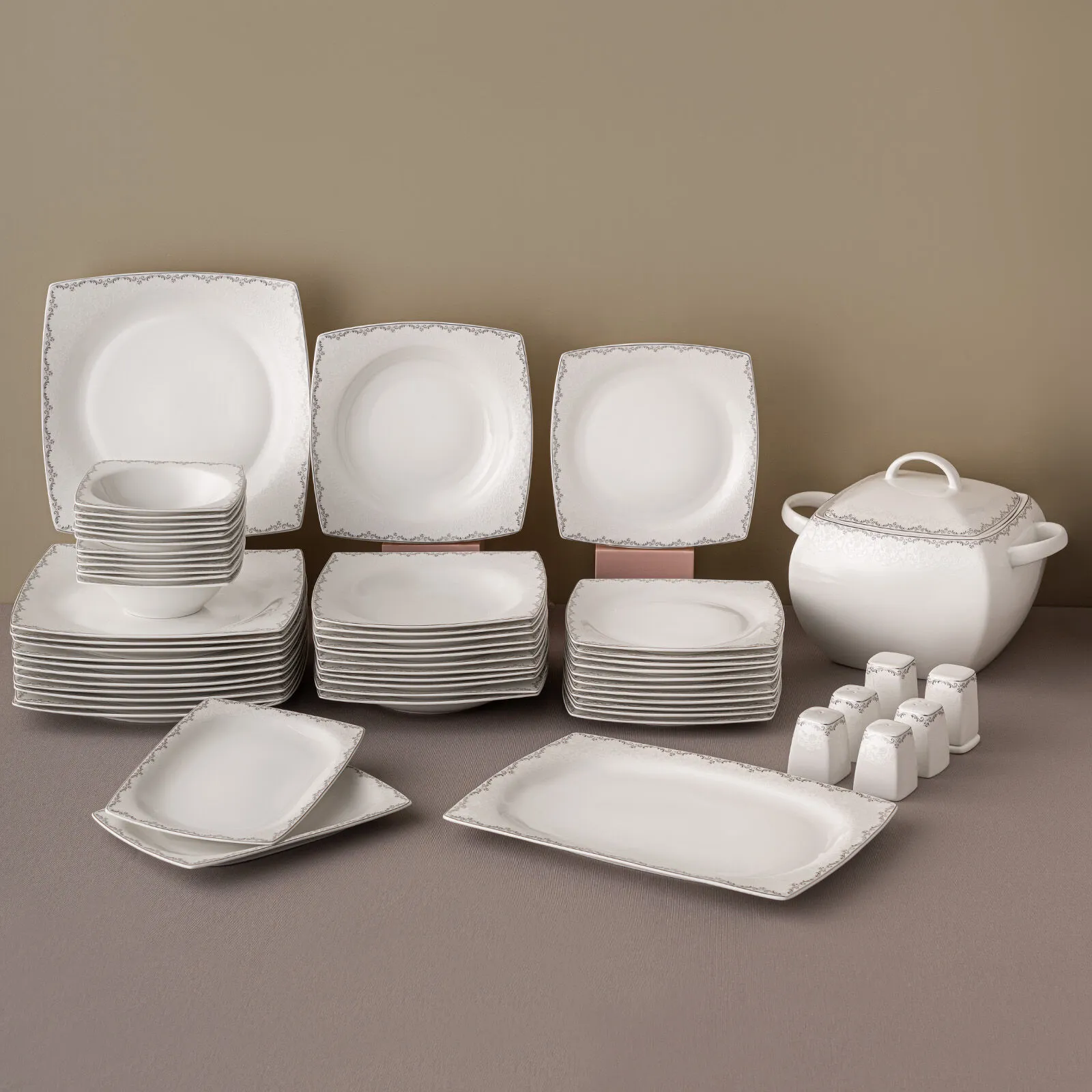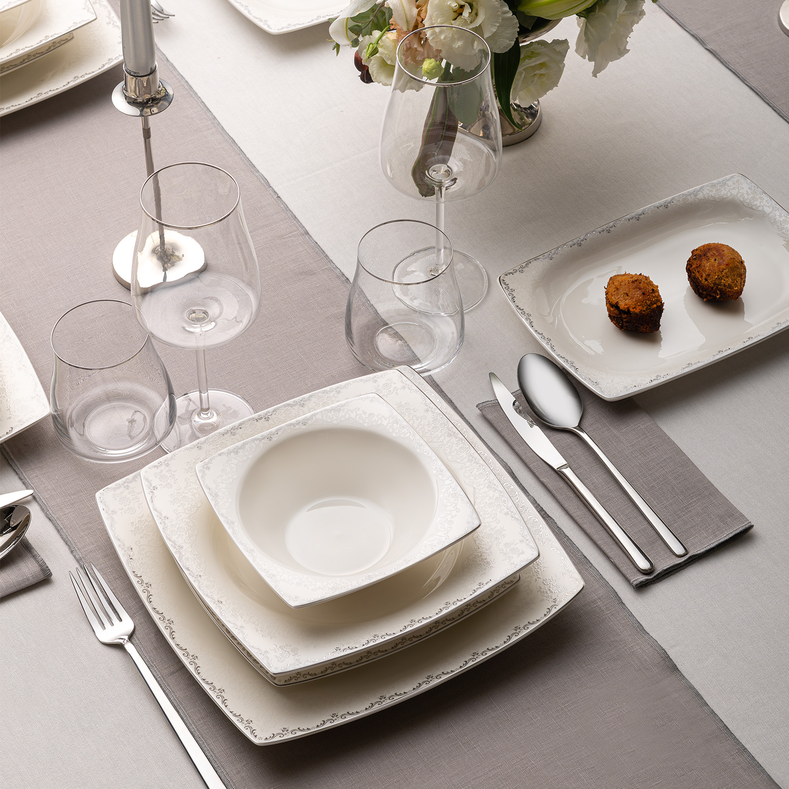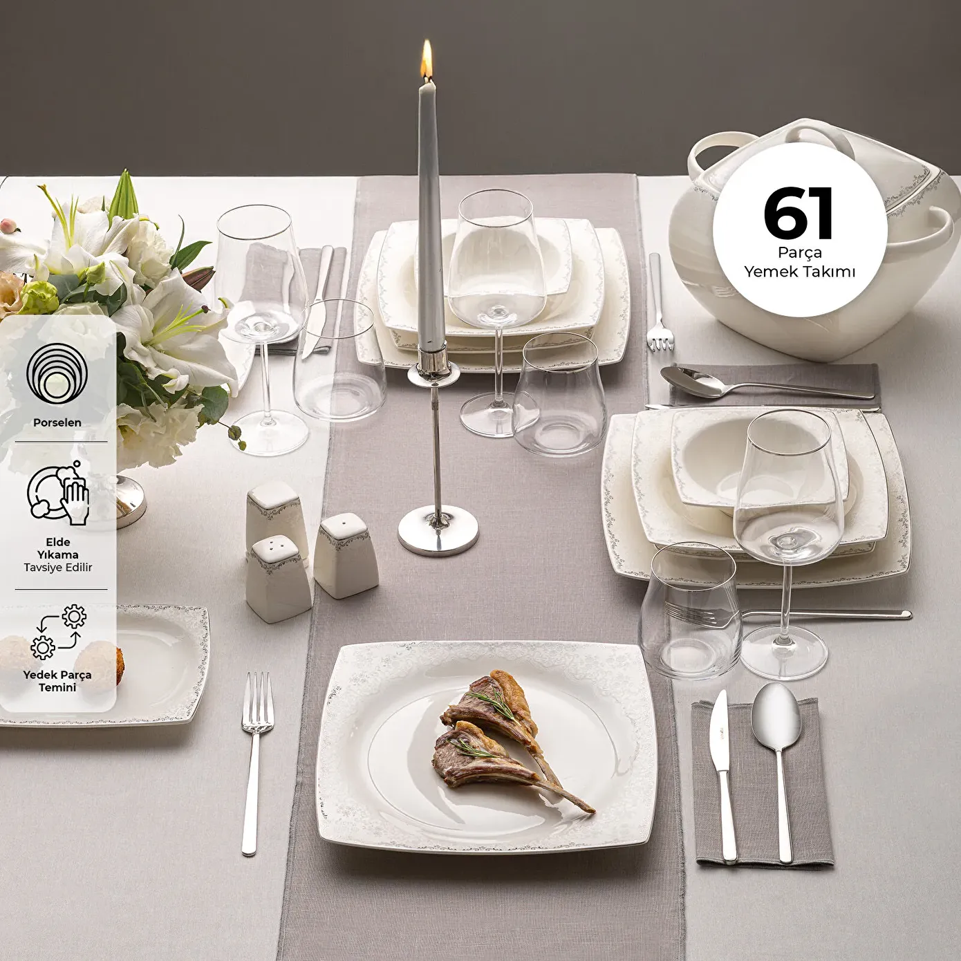 Emsan Fine Bone Yeni Lotus 61 Parça 12 Kişilik Kare Yemek Takımı