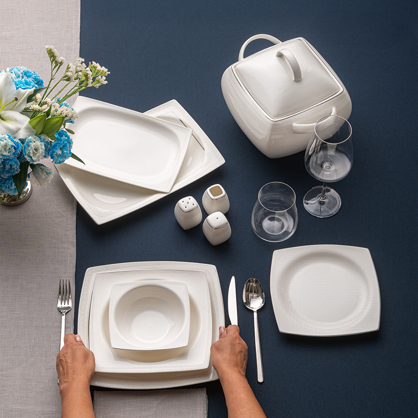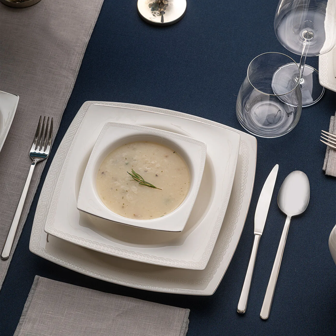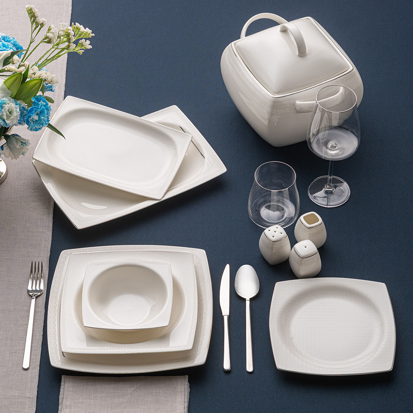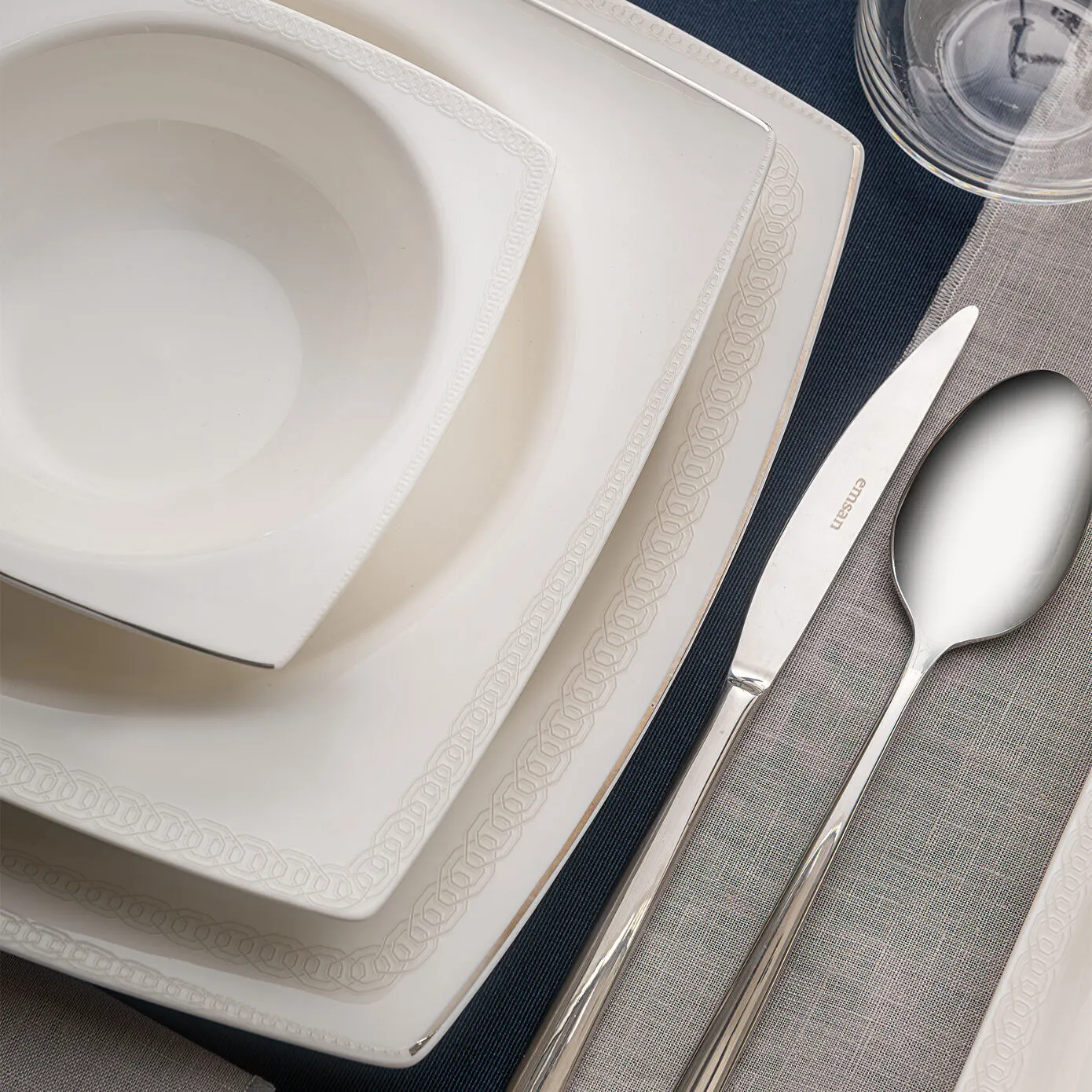 Emsan Zencerek Fine Bone 60 Parça 12 Kişilik Kare Yemek Takımı