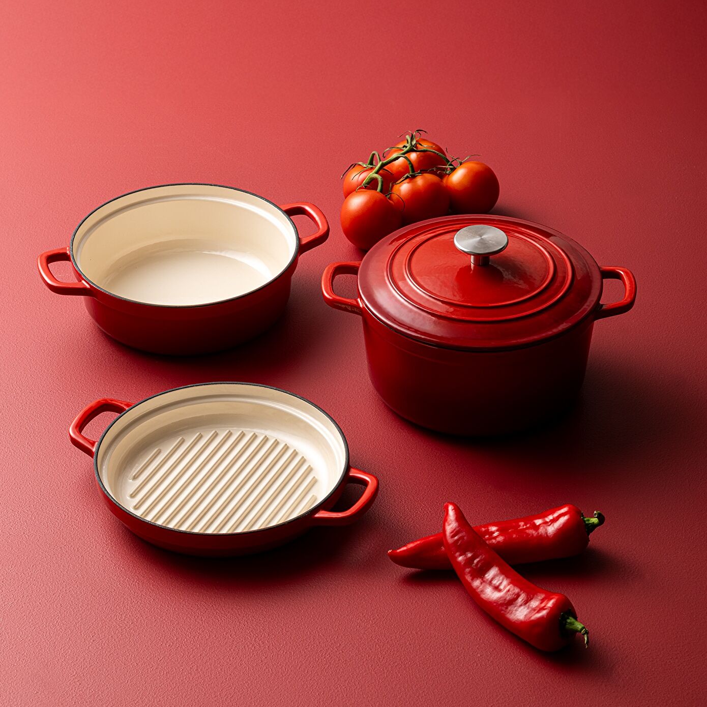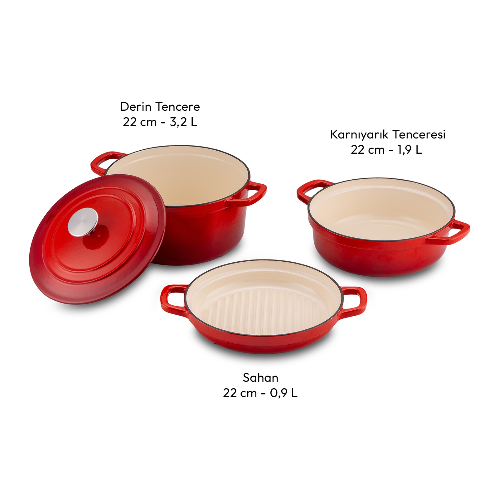 Emsan Fortino Cast Döküm Tencere Seti Kırmızı 4 Parça 22 cm