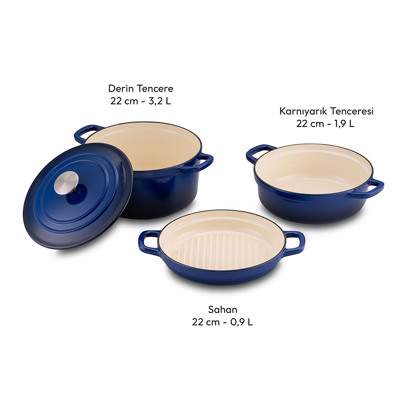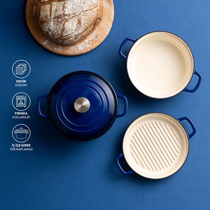 Emsan Fortino Cast Döküm Tencere Seti Lacivert 4 Parça 22 cm