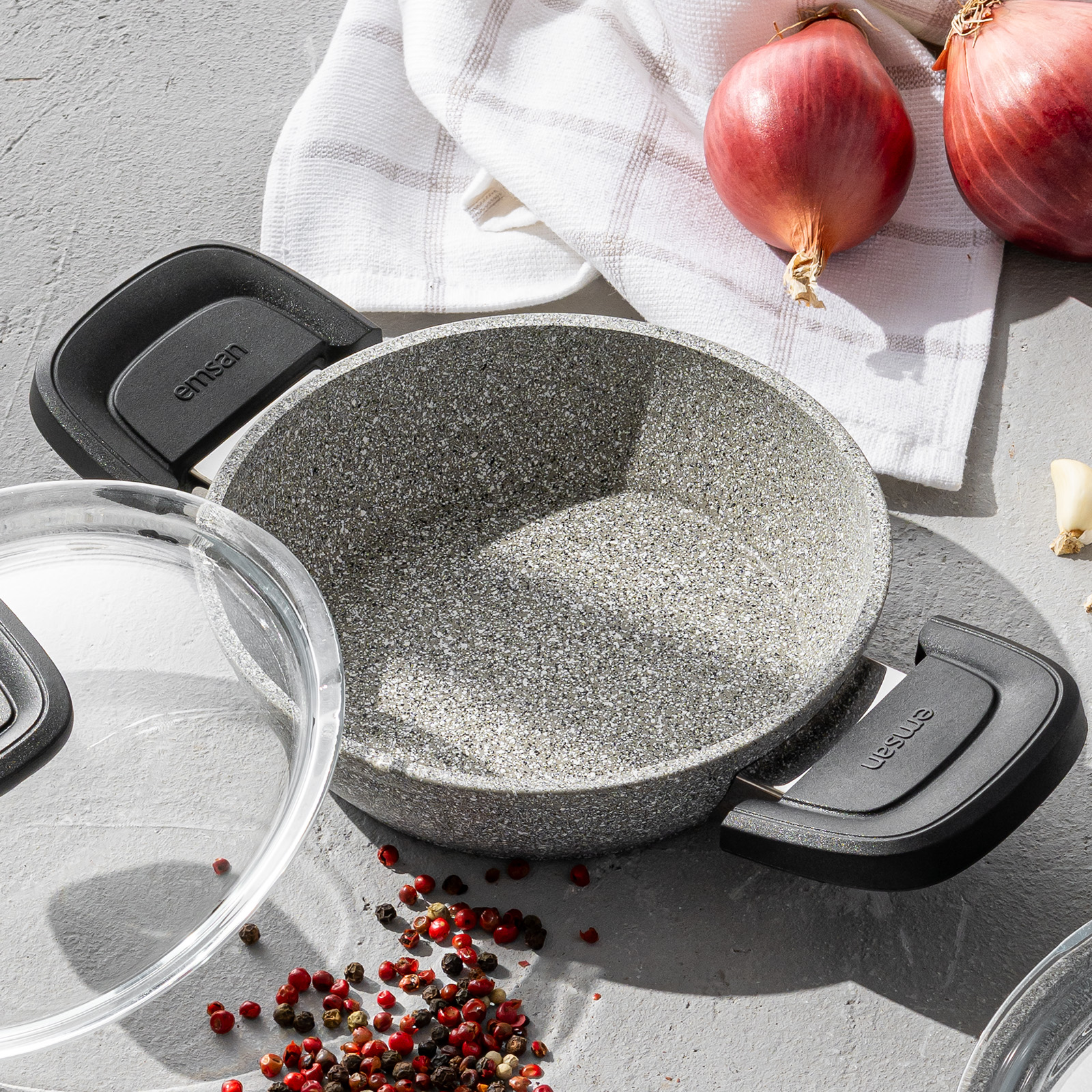 Emsan Fortis Tencere Seti ile mutfağınızda her öğün mükemmel lezzeti yakalayın. Maksimum yanmaz yapışmazlık sağlayan granit kaplaması, yemeklerinizin her seferinde ideal kıvamda pişmesini sağlar. Özel iç yüzey sayesinde yiyecekler tencereye yapışmaz, temizlik rahat ve hızlıdır. Leke tutmayan dış yüzeyi ile uzun ömürlü kullanım sunar ve bulaşık makinesinde yıkanabilir. Çizilmelere karşı dayanıklı yapısı sayesinde set, günlük kullanıma uygundur ve uzun ömürlü performans sağlar.