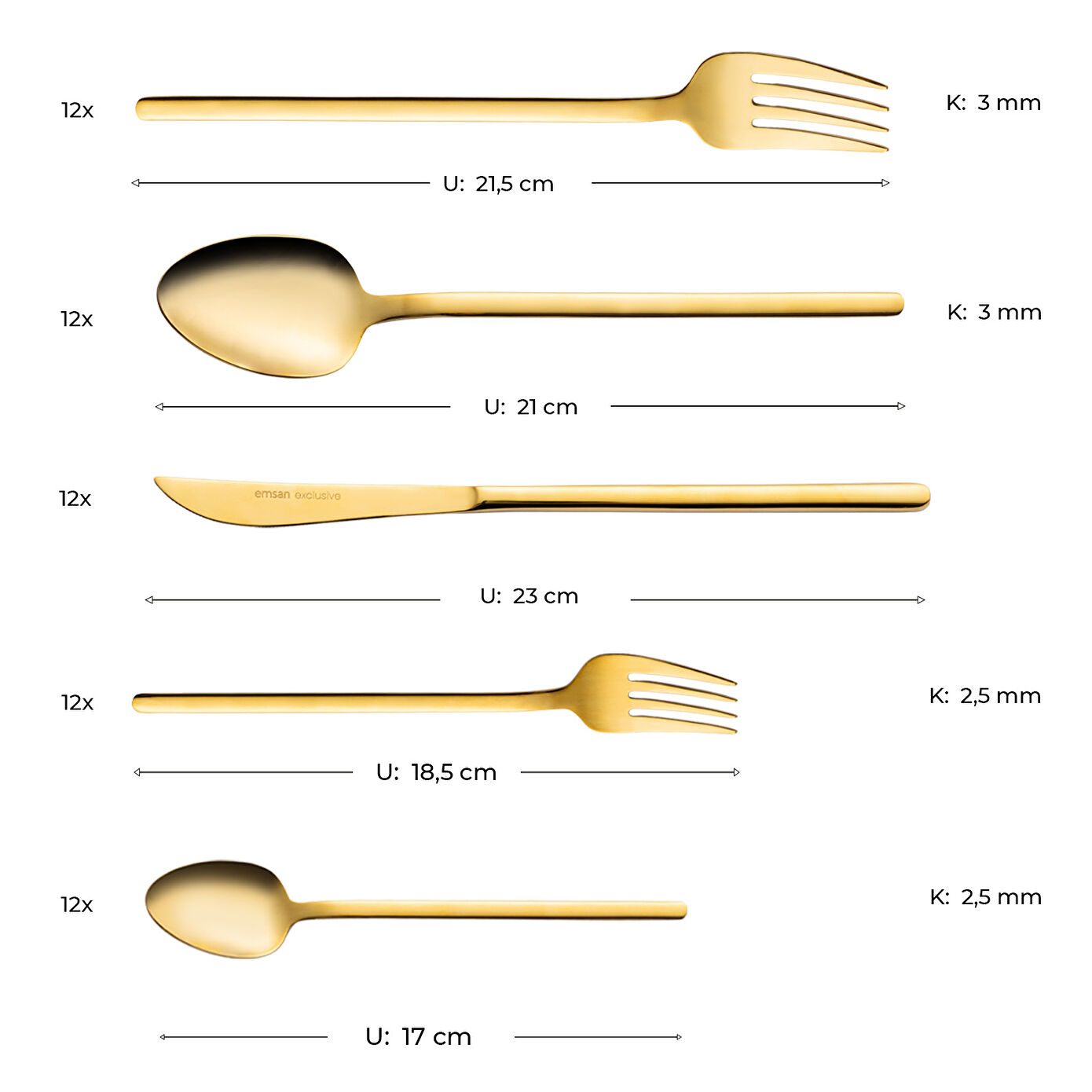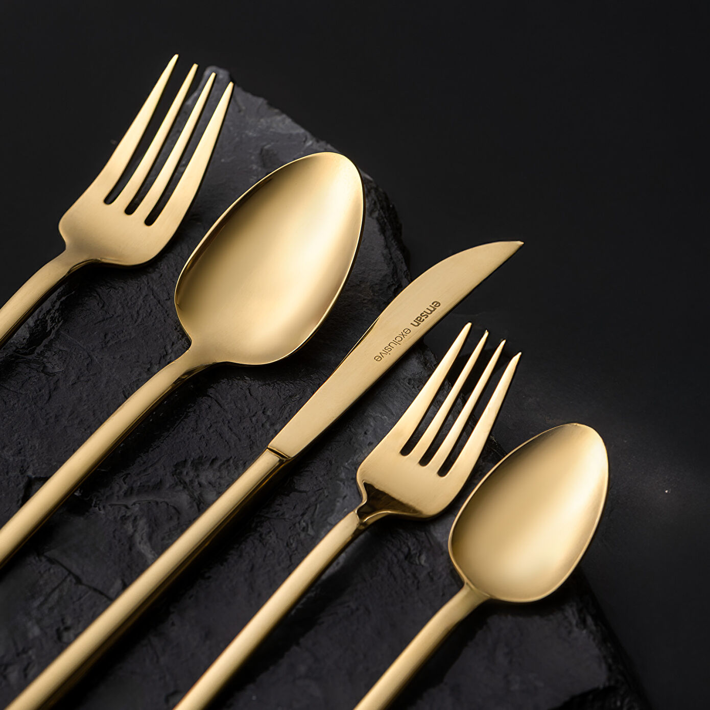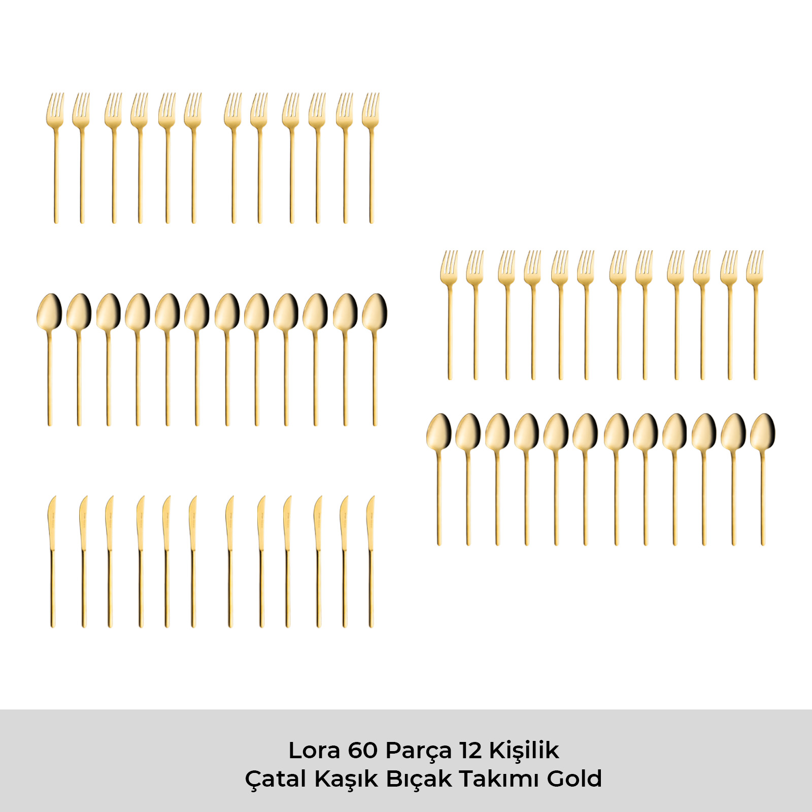 Emsan Lora Parlak Gold 60 Parça 12 Kişilik Çatal Kaşık Bıçak Takımı