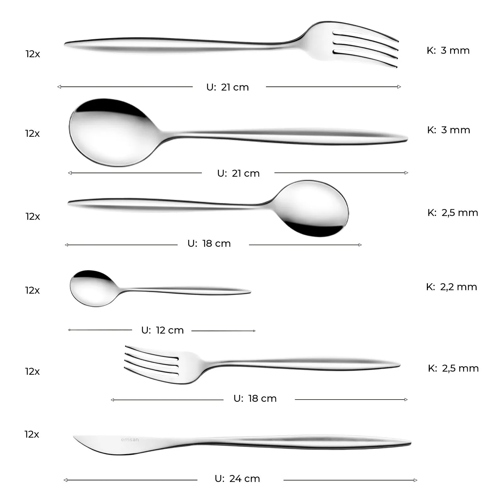 Emsan Nova 72 Parça 12 Kişilik Çatal Kaşık Bıçak Takımı Lüks Kutulu