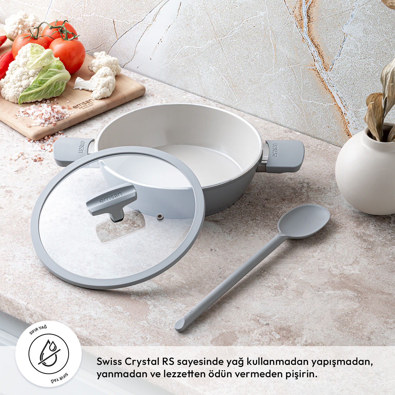 İsviçre kristal teknolojisiyle geliştirilen Swiss Crystal RS Serisi, üstün yapışmaz yüzeyi sayesinde sıfır yağ ile lezzetli yemekler pişirmenizi sağlar. Isıyı eşit dağıtan özel yapısı, yiyeceklerin ideal kıvamında pişmesine yardımcı olur. Kolay temizlenen, toksik madde içermeyen güvenli yapısıyla mutfağınızda pratik ve sağlıklı bir kullanım sunar.