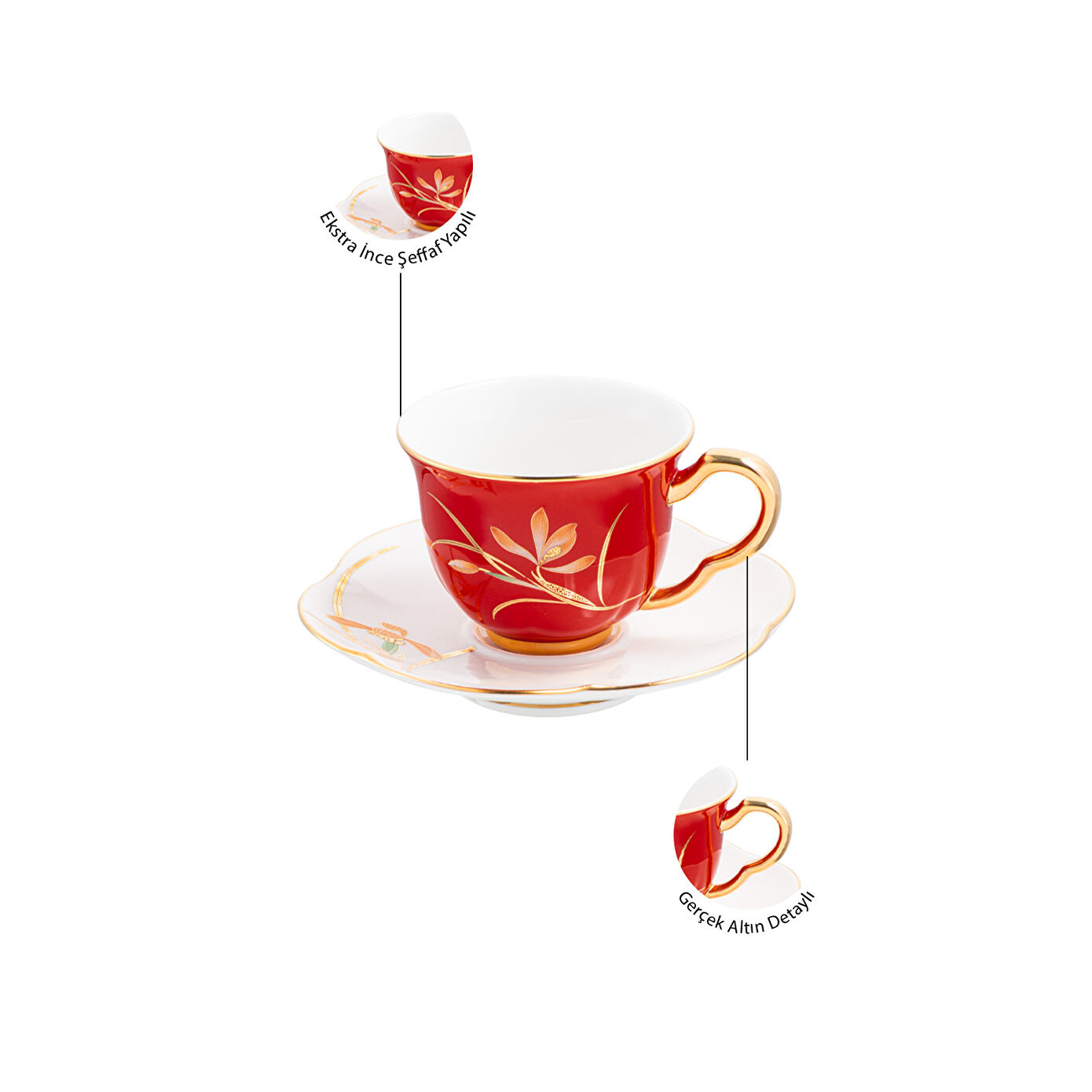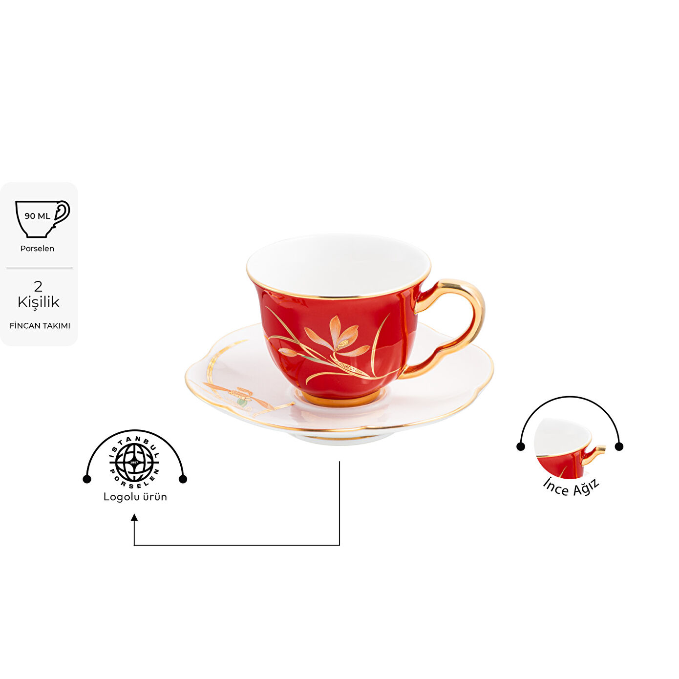 İstanbul Porselen Berin 2 Kişilik Kahve Fincan Takımı Kırmızı 90 ml