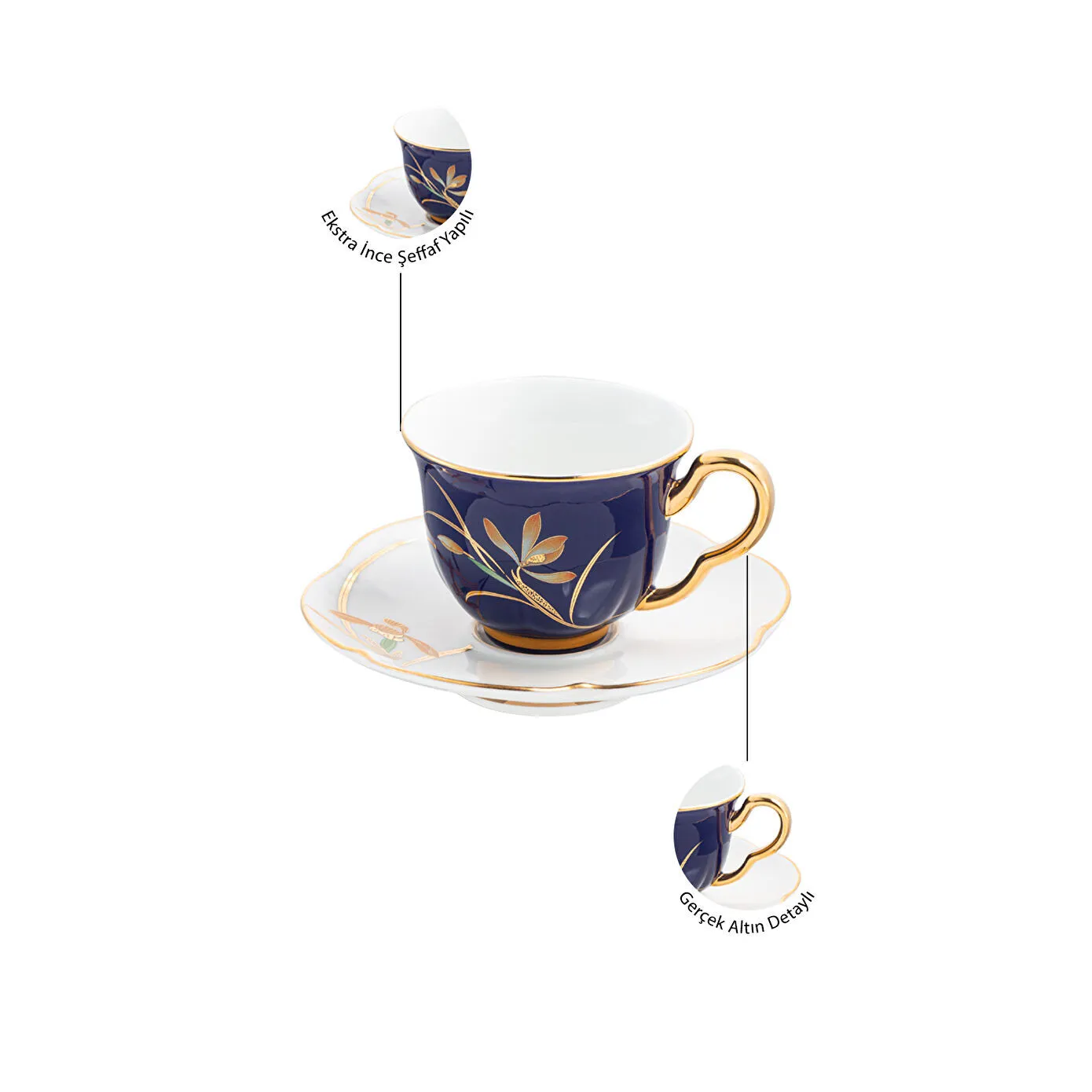 İstanbul Porselen Berin 2 Kişilik Kahve Fincan Takımı Kobalt 90 ml
